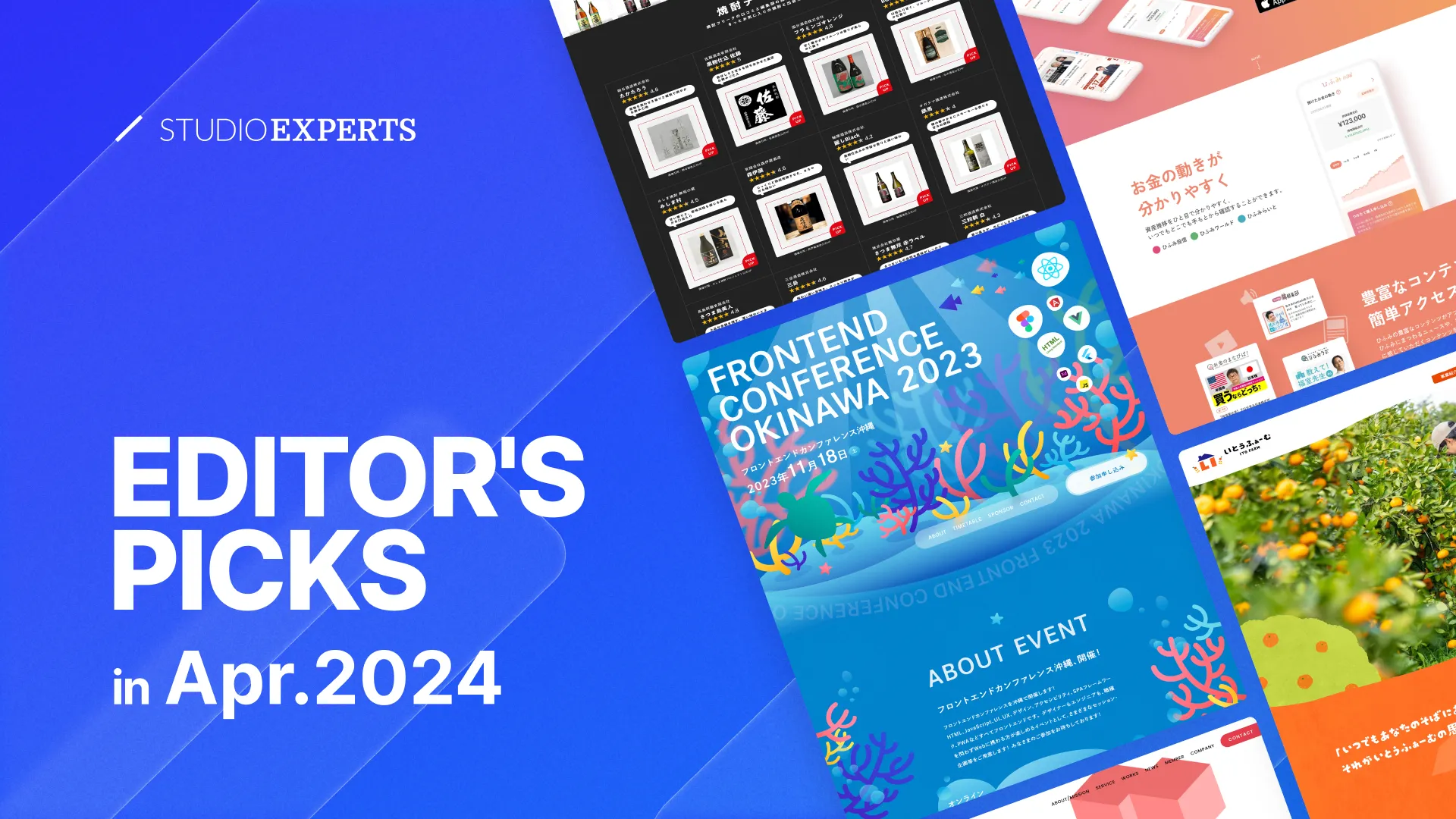 4月の「EDITOR'S PICKS」では、2023年に公開されたStudioサイトの中から優れたWebサイトを讃えるWebデザインの祭典「STUDIO DESIGN AWARD 2023」でグランプリを受賞された株式会社スピッカートをはじめ、新しく「Studio Experts」に加盟した制作会社のサイト事例をご紹介します。